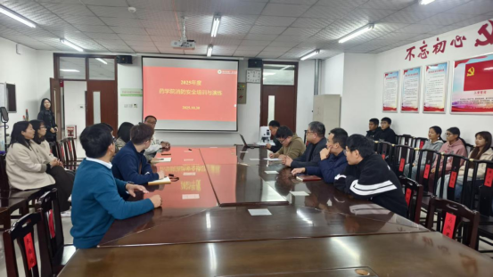 为营造良好的校园环境,加强药学院师生的消防安全意识,2025年10月30日下午3点,药学院全体教职工及部分学生代表在综合实验楼E楼药学院会议室进行2024年度消防安全培训。