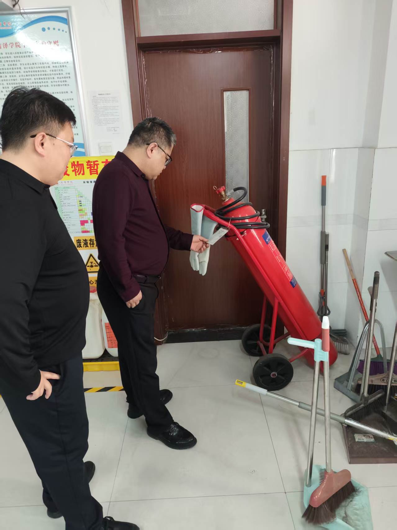 为规范和加强我院实验室各项管理,消除各类安全隐患,促进我院实验教学顺利进行,3月25日下午,由院长樊兆斌、副院长梁笑牵头,联合实验教学中心与各实验室负责人,对我院各实验室进行了综合检查。检查内容涉及“实验室安全与管理”“灭火器日常检查”“教学规范”“实验室环境建设”等四个方面内容。